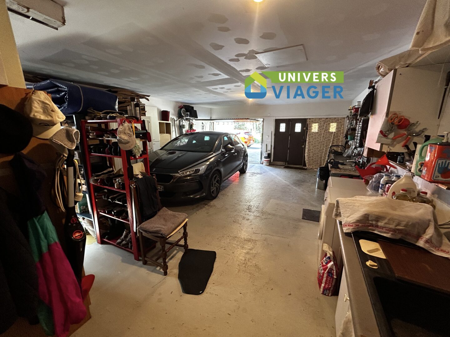 On accède au garage de près de 60 m2 par un couloir isolé. Deux portes permettent l’accès au garage depuis l’extérieur. Deux véhicules tiennent à l'intérieur sans aucun souci.