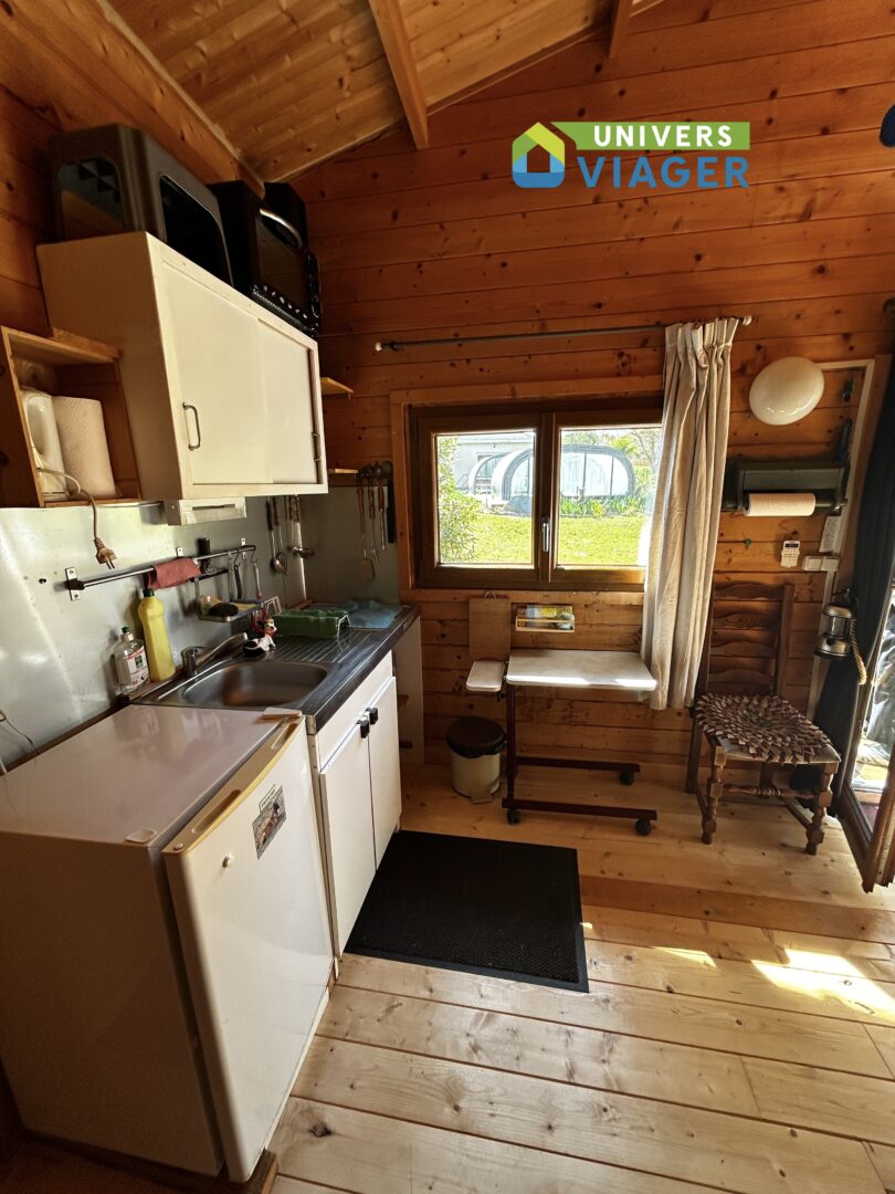 Un joli chalet en bois de 25 m2 habitables offre couchage pour petits et grands que ce soit au rez de chaussée ou dans la mezzanine de 10 m2 qui ressemble à une vraie cabane perchée dans les arbres. Entièrement isolé et équipé, ce chalet totalement indépendant comprend une kitchenette et une salle d’eau avec wc.
