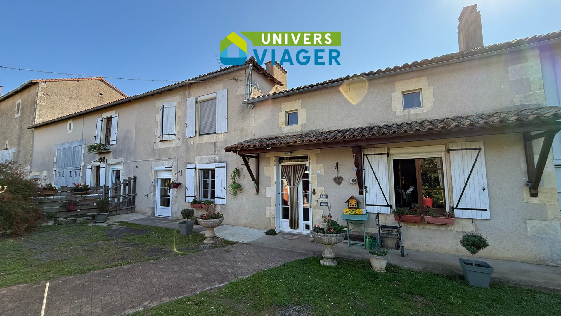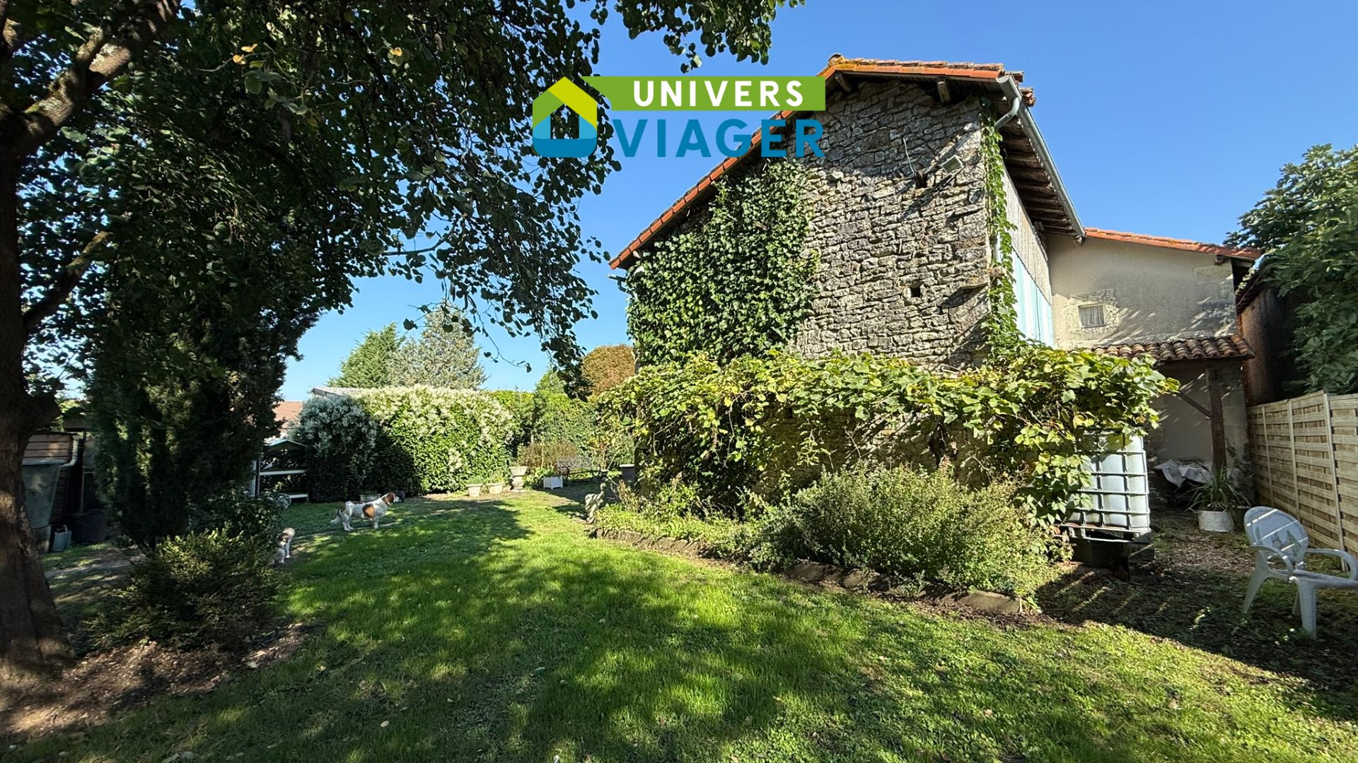 Univers Viager vous propose à la vente, en viager occupé, un ensemble immobilier de 2 maisons attenantes avec dépendances et terrain arboré de 3579 m², comprenant: